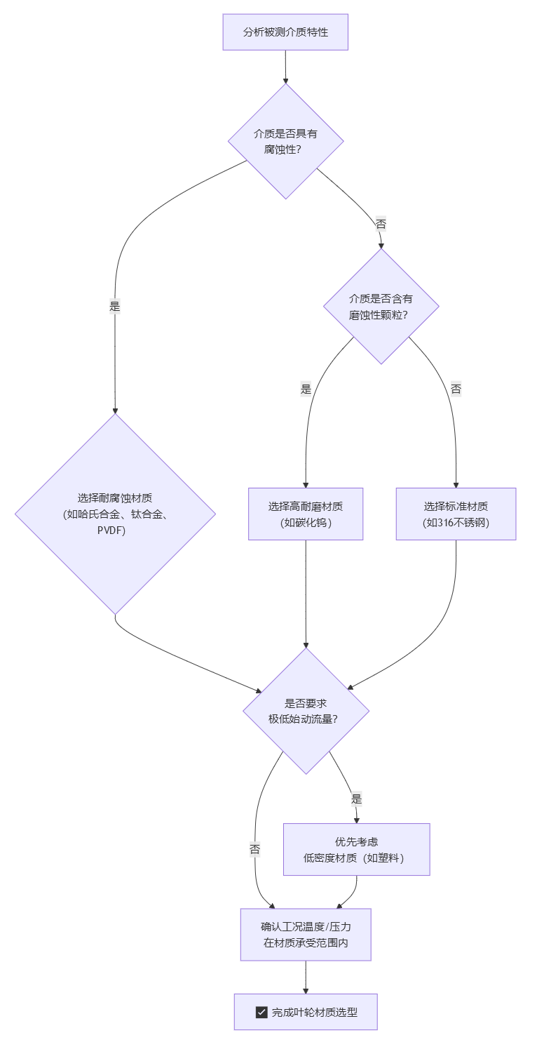 选择叶轮材质是一个系统性的决策过程,可以遵循以下决策路径: